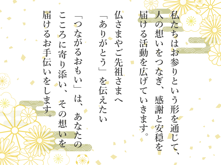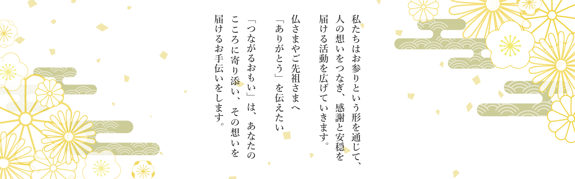 つながるおもいは、あなたのお気持ちを大切にお預かりし仏さまのもとへお届けします。