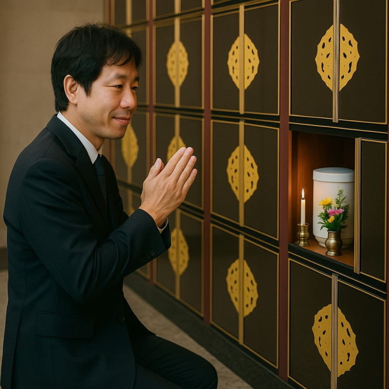 参拝希望の納骨堂へ代わりにお参りいたします。 ご依頼内容を伺い、合掌・礼拝・写真報告を行います。